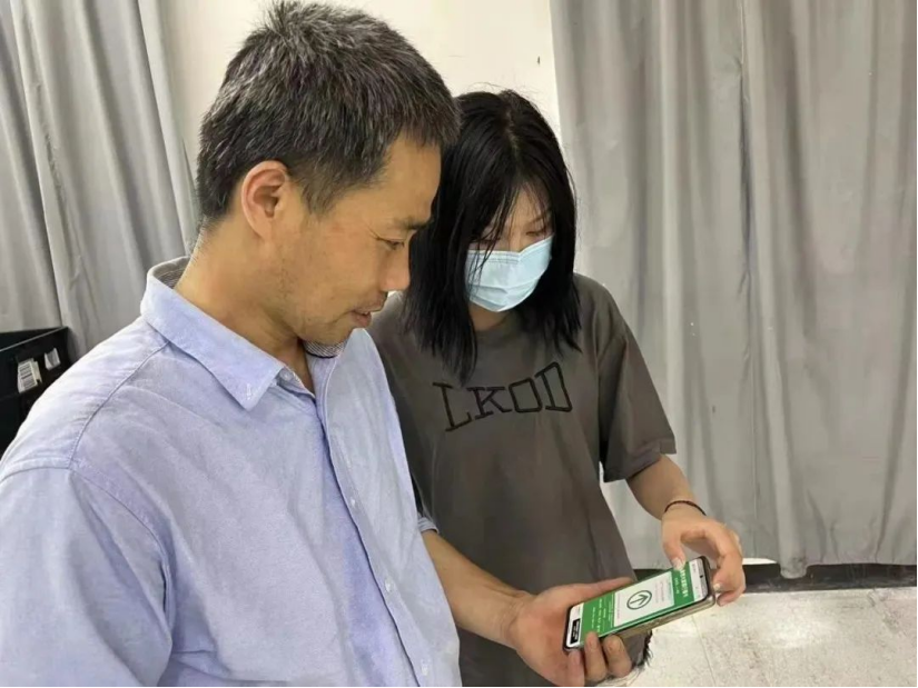 图 为中年人正在聆听讲解行程码的使用方法 李清华