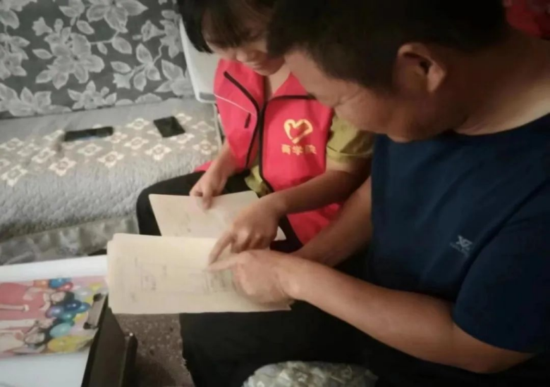 图 为正在用微信纸质使用教程为老人讲解微信使用流程 任李琴