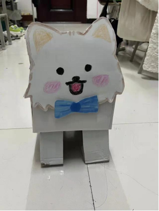 纸箱小狗大多都用废弃的纸箱制作而成。许多同学用表情包与网红狗结合起来,制作出各式各样形态可爱,外观精美的小狗。小纸狗的造型多样,形态不一,惟妙惟肖。有些学生在寝室“遛狗”,让小狗在门口“站岗”。不少同学表示,这样的手工制作品格外具有吸引力,丰富了课余生活,锻炼了手工能力,培养了健康的审美情趣。
