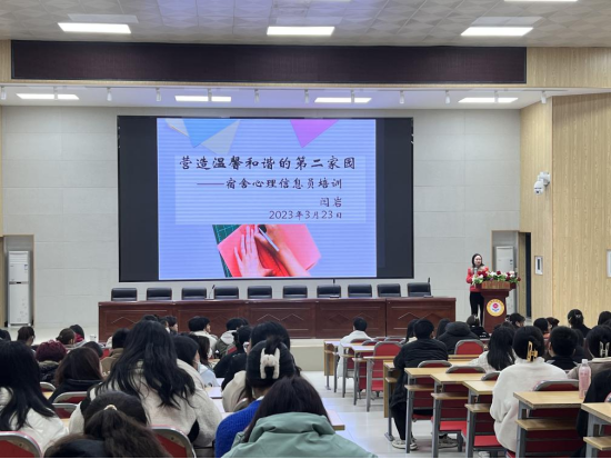 3月15日至16日,丁洁老师为在校班级心理委员作了题为《明确价值,从心出发》的报告;3月23日,闫岩老师为宿舍心理信息员作了题为《营造温馨和谐的第二家园》的报告。两场报告结合相关心理数据和真实案例,从大学生心理健康现状,心理问题鉴别及常见心理问题,学生心理问题的应对以及干预等方面详细分析了大学生常见心理疾病的症状表现、辨识和预防措施。