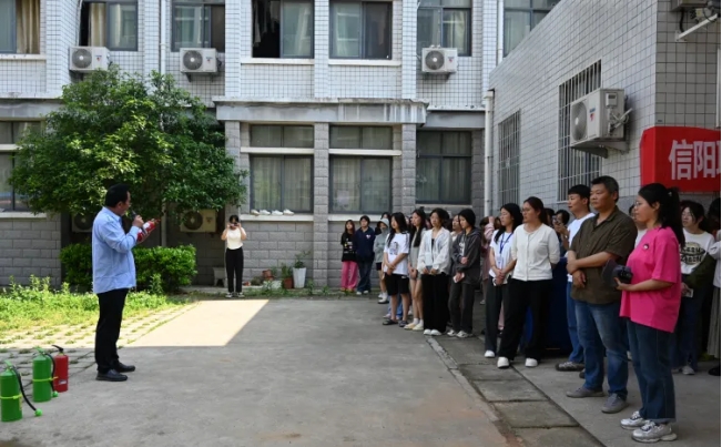 吴长城科长对消防安全知识进行培训,详细介绍灭火器的适用范围和使用方法,教会师生各种灭火器的正确使用方法、各种疏散逃生技能。