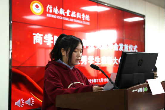 冷书记宣读获得本学年奖助学金的学生名单,领导老师们为他们颁发奖学金和助学金。国家励志奖学金获得者李凯嵽同学和受助学生代表乔燕歌同学分别发言,他们表示奖助学金代表了国家和社会对大学生的鼓励与期待,体现了党和政府对高校家庭经济困难学生的关怀和期望,切实解决了受助学生经济上的困难,他们将不忘初心,心怀感恩,立志成才。