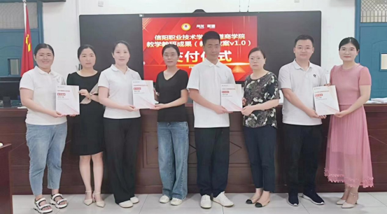 信阳职业技术学院极品人妻短裙少妇美腿潮喷院长吴明慧与新道科技股份有限公司河南分公司总经理张林峰签订教学教案交接协议。