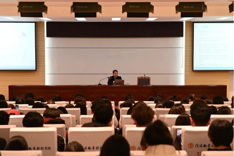 在讲座中,邱学明从“我眼中的电商”、“信阳电商浪花”、“如何面对电商”三个方面分析了电子商务行业的当前发展状况和广阔的就业前景,介绍了信阳电商小镇的背景、直播电商发展情况和光山现象,探讨了电商领域的核心本质,并分享了关于就业创业的宝贵建议。最后,他希望同学们无论从事任何行业都要遵纪守法、服务产业、服务社会、服务国家、服务时代。报告厅座无虚席,掌声常响。整场讲座通俗易懂,富有幽默感,结合真实的行业案例,让在座的师生都受益匪浅。