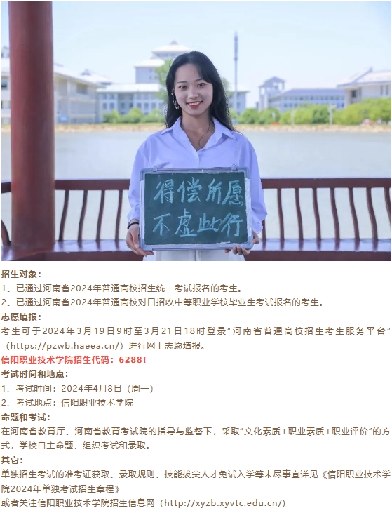 信阳职业技术学院2024年高职单独考试招生简章!
