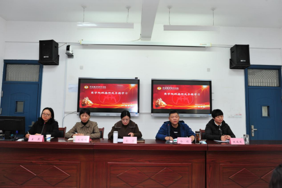 会上,刘芳书记领学了《信阳职业技术学院教师师德考核实施细则》,从考核范围、考核程序、考核等次、考核要求等方面进行详细解读。刘书记强调,全体教师要高度重视本次考核工作,实事求是、客观公正地做出评价。王燕副院长领学了《高等学校教师职业道德规范》、《新时代高校教师职业行为十项准则》等文件。