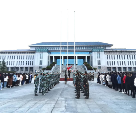 早晨7时,仪式正式开始。在同学们满怀期待的目光中,军姿笔挺、面容庄严的国旗班同学们迈着整齐的步伐向旗杆走来。当《义勇军进行曲》缓缓奏响时,同学们屏息静气,轻唱国歌,目光跟随国旗缓缓上升。雄壮的国歌声响彻明德广场,现场气氛庄严肃穆。
