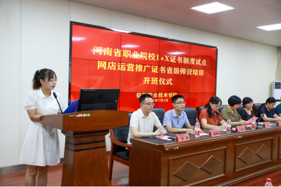 信阳航空职业学院教师朱赛宁作为学员代表发言,表示将倍加珍惜此次学习和提高的机会,严格遵守培训纪律,深刻把握新时代职业教育的新要求,以饱满的热情、认真的态度投入到学习当中,不断提升专业实践技能和教育教学水平,努力培养出更多高素质技术技能型人才。