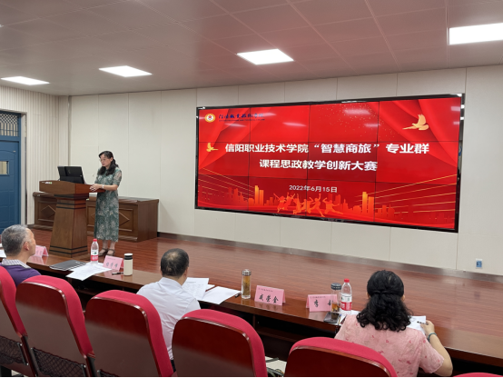 为落实立德树人根本任务,深化课程思政教学改革,创新课堂教学模式,推动高水平专业群建设,6月15日下午,信阳职业技术学院“智慧商旅”专业群课程思政教学创新大赛在极品人妻短裙少妇美腿潮喷东教楼二楼报告厅成功举办,来自专业群3个学院的8名教师参加比赛。实验实训管理中心主任戚荣金,教务处副处长李超,旅游学院院长杨学峰,极品人妻短裙少妇美腿潮喷院长吴明慧,应用外国语学院副院长刘文敏,极品人妻短裙少妇美腿潮喷副院长朱桂明莅临现场观摩比赛。