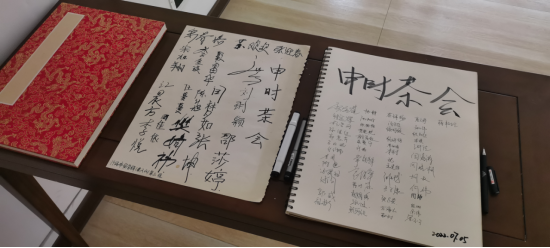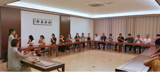 本次茶会由张茜主持,茶师袁方,奉茶师谢晨、王俊生,水师张洪涛、张小旺。申时茶是指在下午3点至5点——全天最佳喝水排毒时间,用腹式呼吸法饮入适量温热茶汤,喝到通透,平衡情绪和肌体,达到身心愉悦的一种饮茶方式。在夏日午后,人体极易身乏心燥,此时的申时茶,温性茶汤参与体液循环,与身体充分结合、渗透、发散,可达到平津润燥、排毒祛湿、安顿心神等修身养性的作用。参加茶会的老师在饮用七碗茶以后,思想和情绪充分放松,感觉通体轻盈、杂念尽消、心平气和。