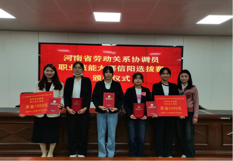 经过理论实操和现场答辩两个环节的激烈角逐,最终,我院教师张世梅获职工组三等奖,我院21级人力资源管理班学生顾馨怡获学生组二等奖,韩慧慧,刘君,董志微三人获学生组优胜奖。比赛结束后选拔赛组委会为获奖选手颁发了荣誉证书和奖金,同时顾馨怡将代表信阳市参加河南省劳动关系协调员技能大赛,我院还获得优秀组织单位奖。