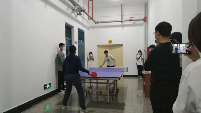 比赛结束后,刘书记和冠军选手同台竞技,随后发表讲话,勉励同学们在封校期间,增强体育锻炼,打造好“第二课堂”,劳逸结合,做德智体美劳全面发展的新时代学生。
