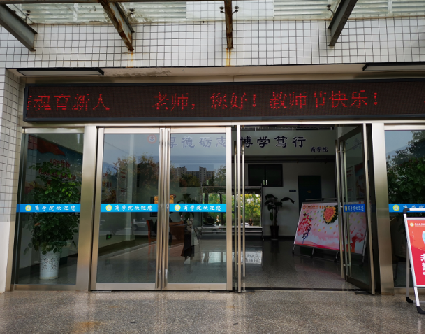 在东西教学楼电子显示屏上,用滚动字幕的方式为教师“亮灯”,显示“迎接党的二十大,培根铸魂育新人” “教师节快乐”等,大力弘扬优秀尊师文化,引导学生感念师恩,礼敬教师,提升教师的获得感、荣誉感和幸福感,当好学生成长的筑梦人、引路人。
