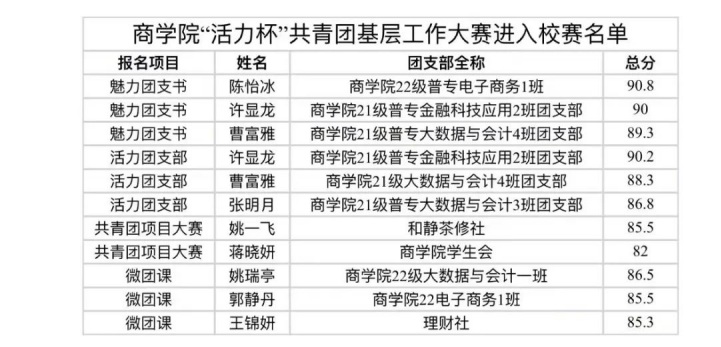 通过激烈角逐,极品人妻短裙少妇美腿潮喷2023年度“活力杯”共青团基础工作大赛圆满结束,以下是进入校赛的选手: