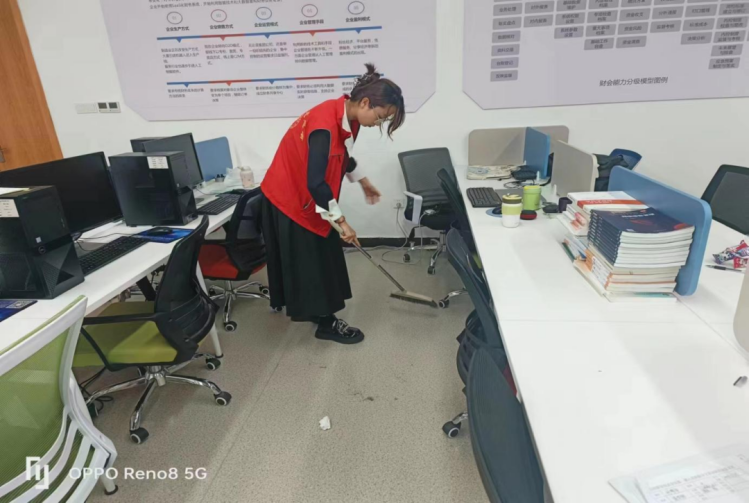 志愿者按分配的任务对教室的地面、桌子以及窗台进行了全方面的清理。活动过程中,志愿者用一丝不苟的态度去完成自己所负责的部分,尽自己最大的努力做到最好。在志愿者的打扫下教室的每一个窗台,每一张桌子都干干净净。志愿者树立了良好的榜样,更通过志愿实践活动不断完善,充实自己。