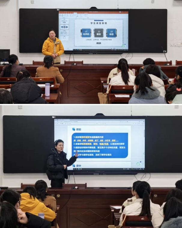 课堂教学研讨关键议题上,万琰主任从多维度拆解课堂管理策略,倡导教师在课堂上要规范秩序、提升教学水平、建立融洽师生关系与善用教学手段,营造良好课堂生态。韩琳静主任强调教学全程管控,课前精心准备教学课件、课中灵活调整教学内容、课后妥善管理教室,确保教学连贯高效。张洪涛主任倡导课件模块化与视觉元素巧用,提升知识呈现效果。张小旺主任建立学生平时成绩评定体系,依学生的课堂表现动态加减分,激发学生积极性。各位主任全方位交流,聚焦激发学生主动性,提升课堂实效性。